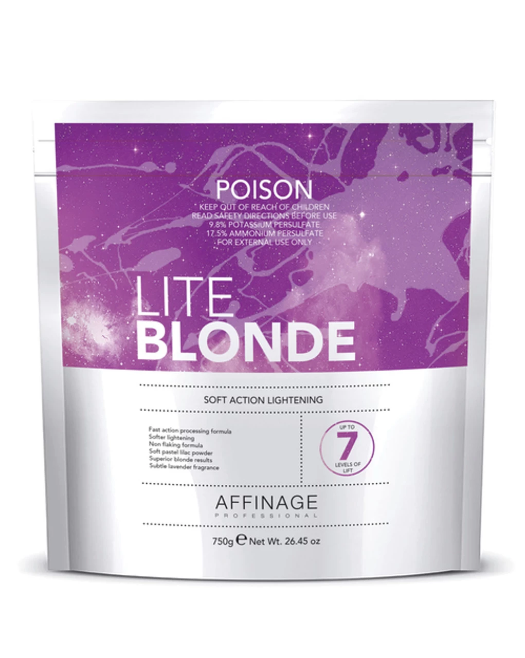 Lite Blonde gives a superior blonde result with soft action lightening. Fast action processing formula achieving up to 7 levels of lift with soft lilac appearance.Â
