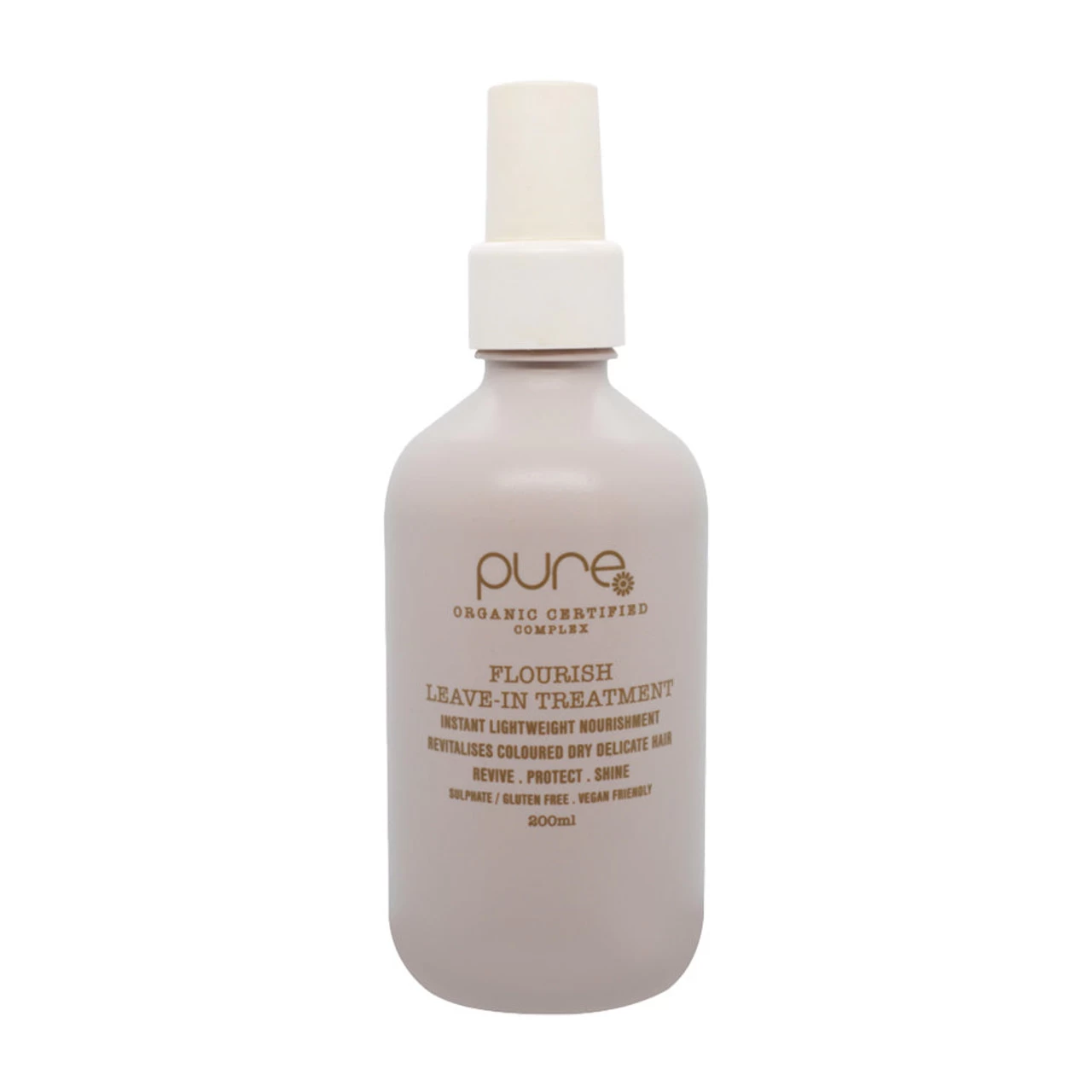 Pure Flourish Leave-In Treatment 200ml is a light weight leave-in treatment designed to revitalise coloured, dry delicate hair. Enriched with nutrient rich amino acids and porosity balancing extracts to nourish and protect hair. With exclusive ‘pure complex’ (certified 100% organic extracts).